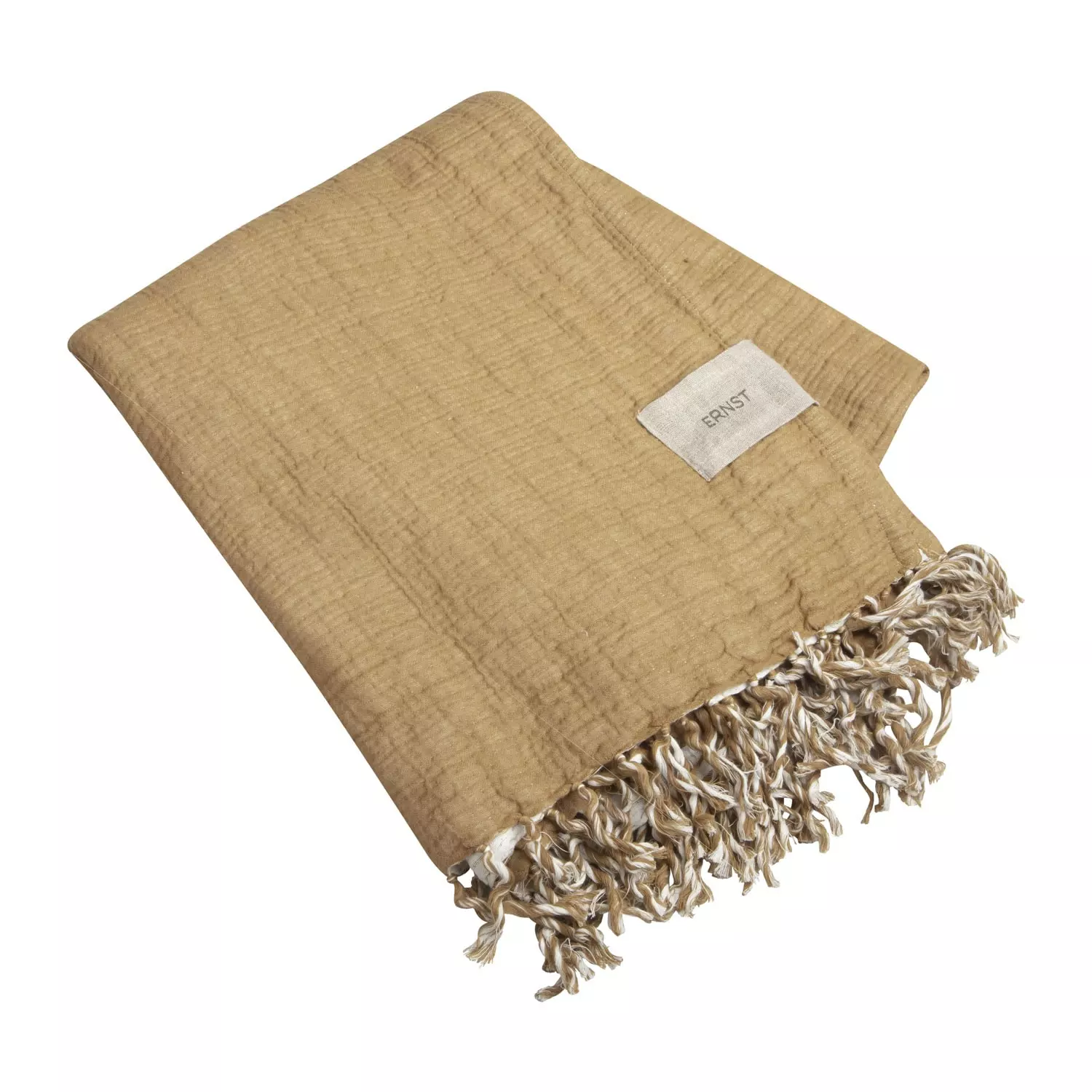 Gemütliche Decke mit Fransen aus 100% Baumwolle von Ernst. Geeignet für kühle Abende das ganze Jahr über.