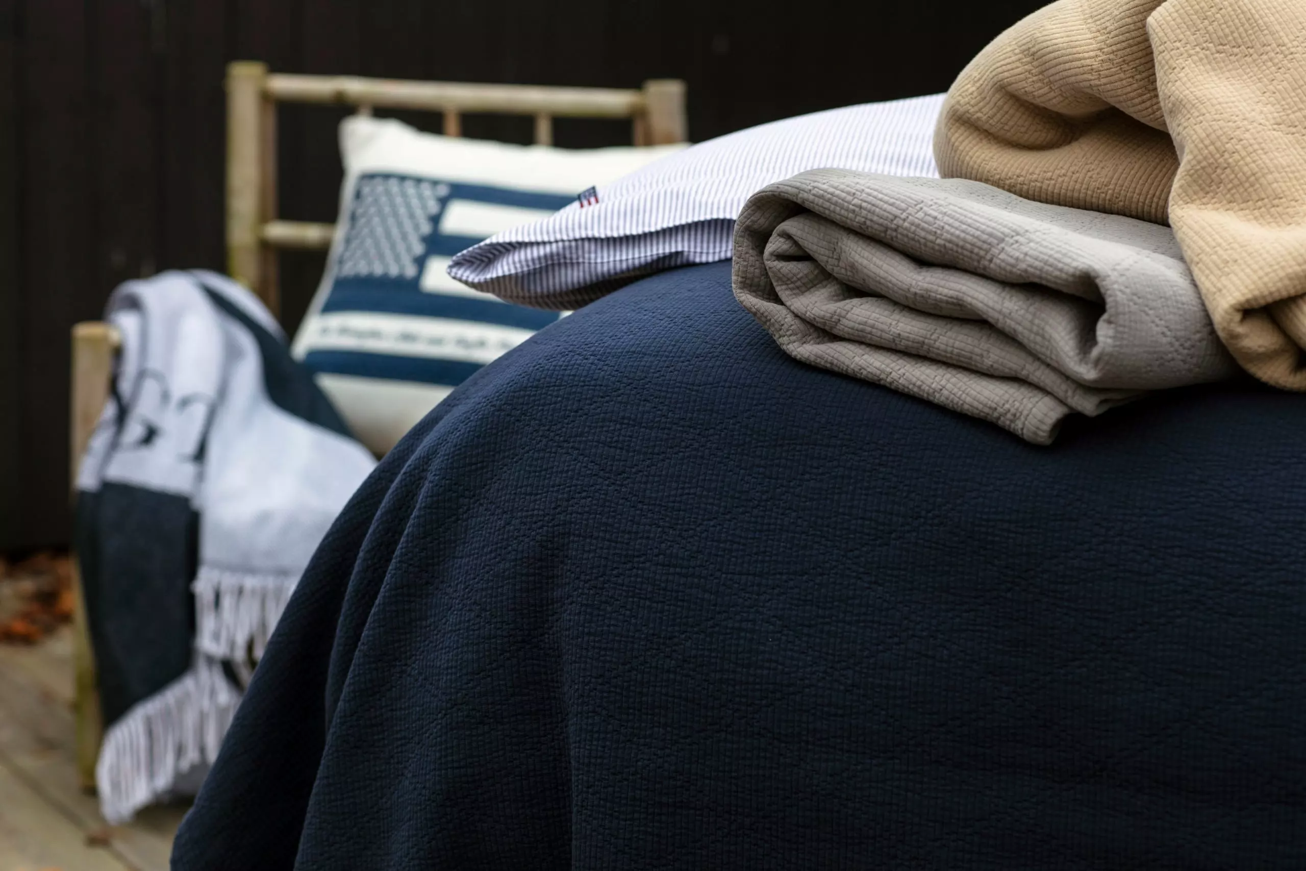 Die Tagesdecke von Lexington hat ein klassisches Design aus Bio-Baumwolle mit einem dezenten Muster und einem Logo in der Ecke. Ein perfektes Detail, das Freude in Ihr Alltagsleben bringt. Es stehen verschiedene Größen zur Auswahl.